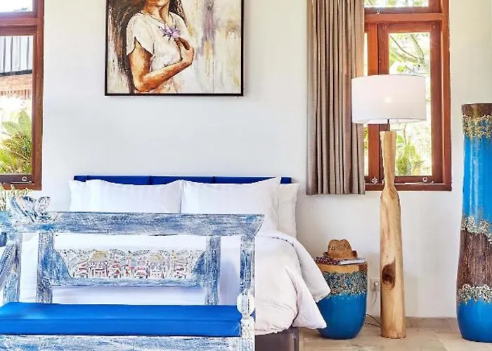 The 4-star Blue Bamboo Villas Tabanan hotel enjoys a quiet location and provides easy access to Pura Rambut Siwi 3.4 miles away.